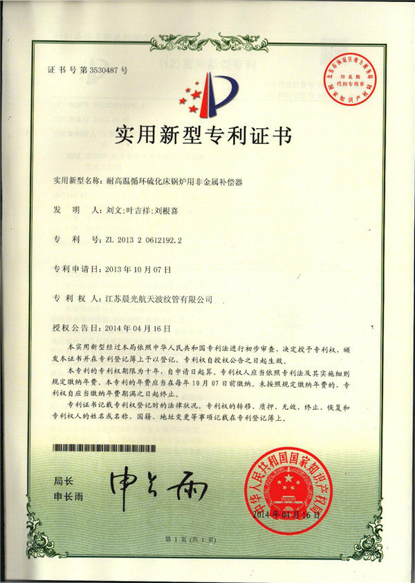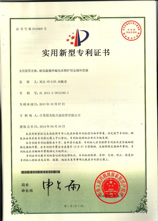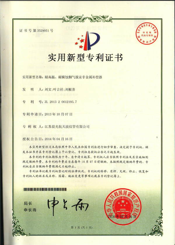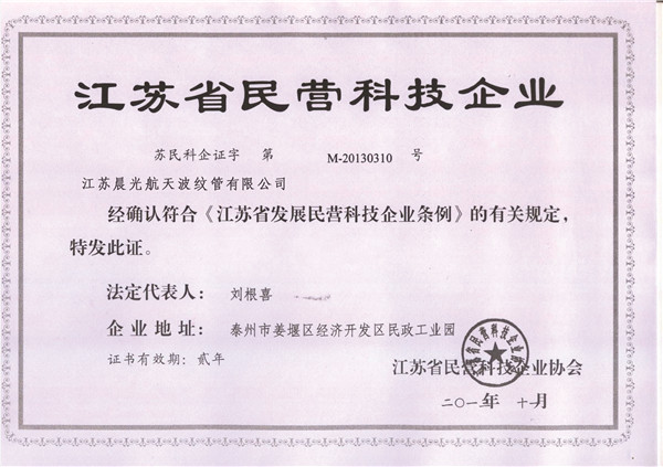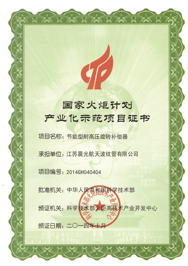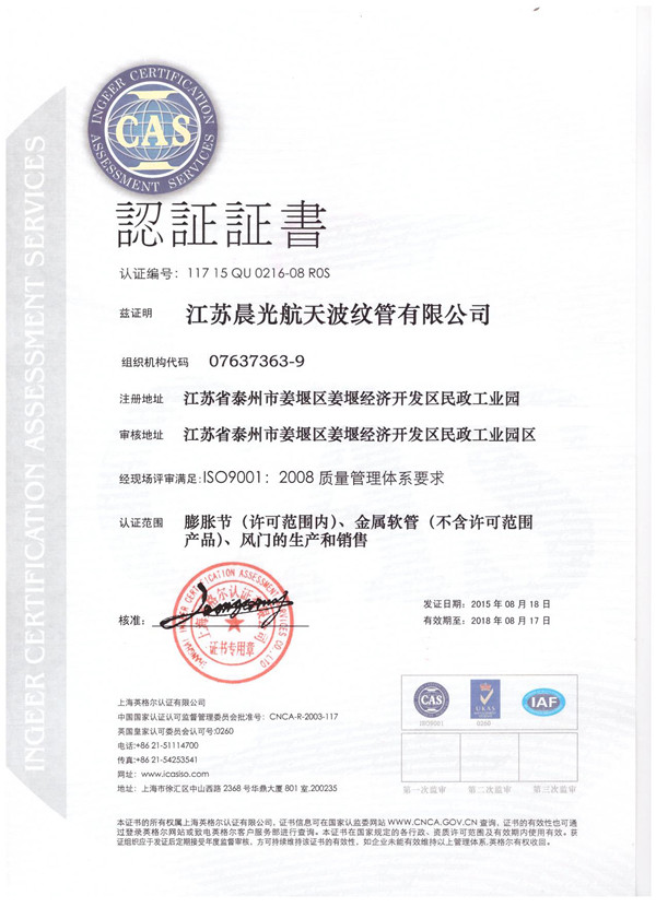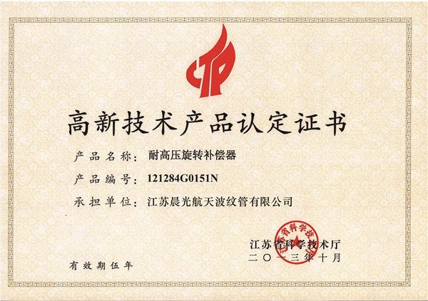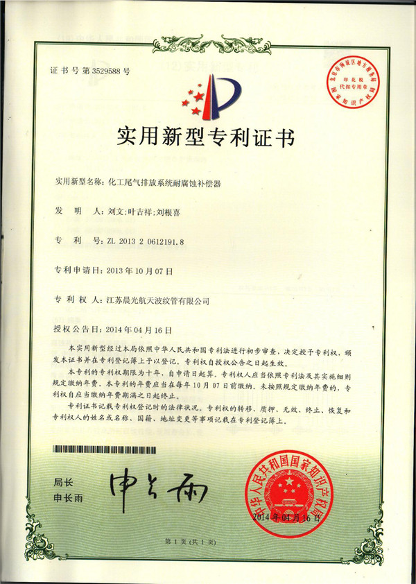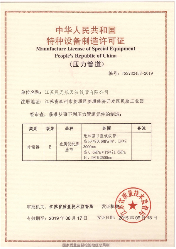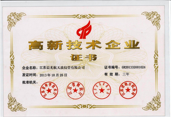 江蘇晨(chen)(chen)光(guang)航天(tian)波(bo)紋管有限公司管理組織嚴密,規章制度(du)健全,在國家(jia)質量監(jian)督機(ji)構進行的歷次產品(pin)抽查中,晨(chen)(chen)光(guang)航天(tian)產品(pin)均獲得了(le)好評。
