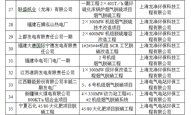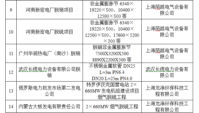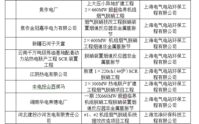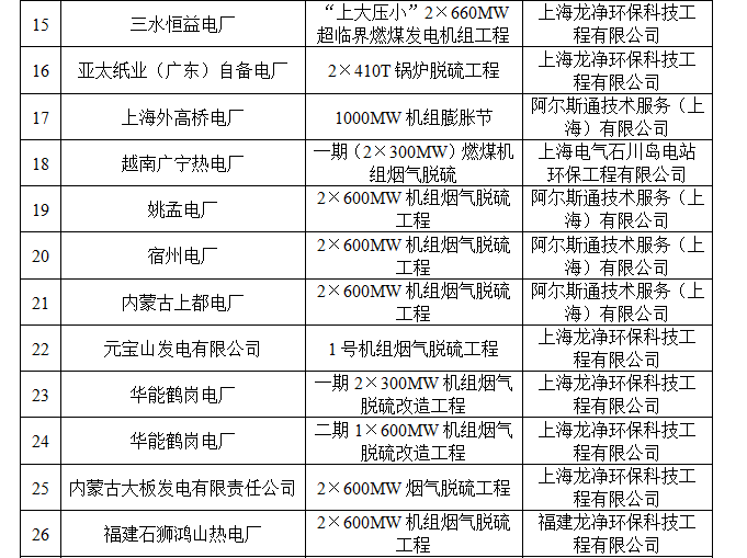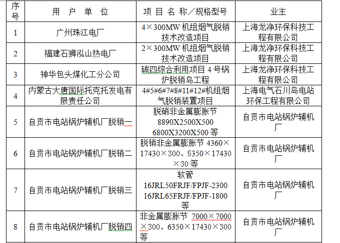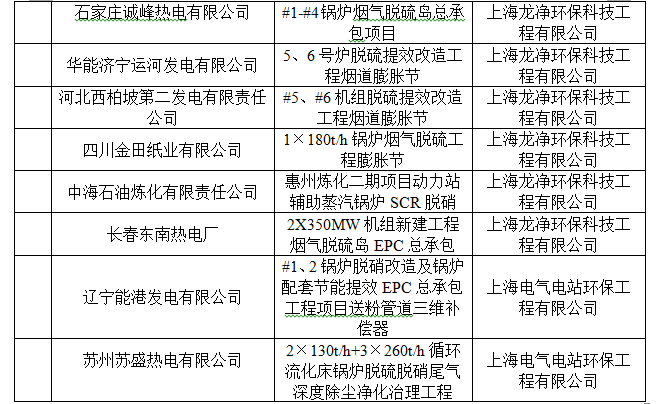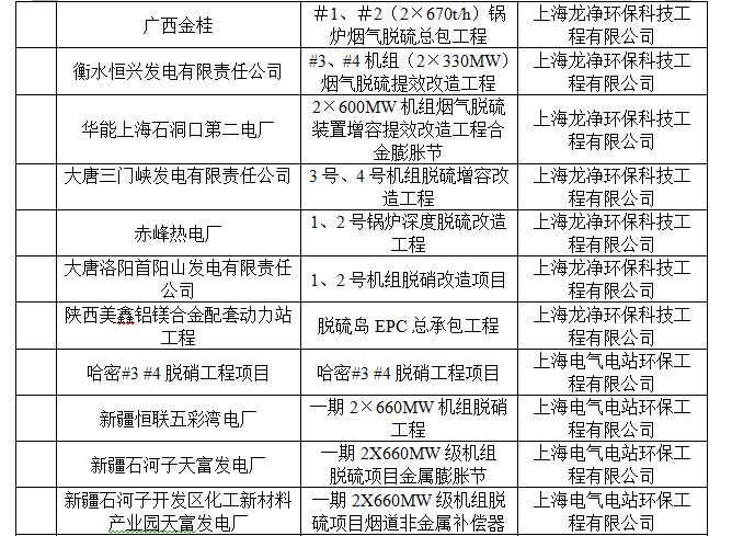 脫硫脫硝用(yong)戶(hu)業績(ji)表