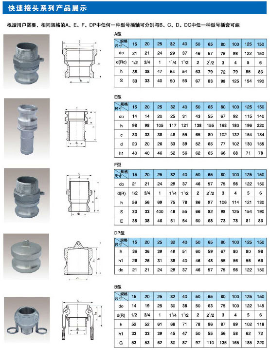 快(kuai)(kuai)速(su)(su)接(jie)(jie)(jie)頭(tou)(tou)(tou)(tou),是(shi)一種不需要工(gong)具就能實現管路連(lian)通或斷開的接(jie)(jie)(jie)頭(tou)(tou)(tou)(tou)。快(kuai)(kuai)速(su)(su)接(jie)(jie)(jie)頭(tou)(tou)(tou)(tou)可(ke)分為:空氣用(yong)快(kuai)(kuai)速(su)(su)接(jie)(jie)(jie)頭(tou)(tou)(tou)(tou)、氧氣燃料氣體(ti)用(yong)快(kuai)(kuai)速(su)(su)接(jie)(jie)(jie)頭(tou)(tou)(tou)(tou)、氣體(ti)液體(ti)共用(yong)快(kuai)(kuai)速(su)(su)接(jie)(jie)(jie)頭(tou)(tou)(tou)(tou)、油壓用(yong)快(kuai)(kuai)速(su)(su)接(jie)(jie)(jie)頭(tou)(tou)(tou)(tou)、惰(duo)性氣體(ti)用(yong)快(kuai)(kuai)速(su)(su)接(jie)(jie)(jie)頭(tou)(tou)(tou)(tou)、冷(leng)卻水(shui)溫油用(yong)快(kuai)(kuai)速(su)(su)接(jie)(jie)(jie)頭(tou)(tou)(tou)(tou)、半導(dao)體(ti)快(kuai)(kuai)速(su)(su)接(jie)(jie)(jie)頭(tou)(tou)(tou)(tou)。