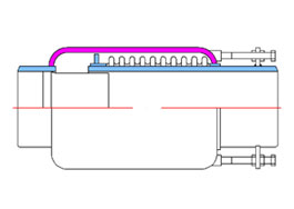 圖 所(suo)示的(de)是(shi)典型(xing)的(de)外壓(ya)(ya)式波(bo)紋(wen)管(guan)膨(peng)(peng)脹(zhang)節的(de)安裝方式。兩(liang)臺(tai)設(she)備敏感的(de)負荷要(yao)求帶法(fa)蘭附件(jian)部分的(de)壓(ya)(ya)力和位(wei)(wei)移都(dou)非常小。當外壓(ya)(ya)式波(bo)紋(wen)管(guan)膨(peng)(peng)脹(zhang)節吸(xi)收所(suo)有的(de)軸向位(wei)(wei)移時, 兩(liang)臺(tai)設(she)備可以由于溫度的(de)影響而延長。第一(yi)個導(dao)管(guan)裝置是(shi)在膨(peng)(peng)脹(zhang)節內部,因(yin)此,下(xia)一(yi)組導(dao)管(guan)裝置設(she)置在14倍于管(guan)線直徑的(de)位(wei)(wei)置上。這(zhe)種系統應用能夠吸(xi)收比直管(guan)壓(ya)(ya) 力平衡式膨(peng)(peng)脹(zhang)節更(geng)大的(de)位(wei)(wei)移。