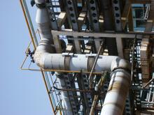 在(zai) “Z”管(guan)道中(zhong)應用(yong)(yong)兩個鉸鏈(lian)式膨(peng)(peng)脹節(jie)元件(jian)可(ke)以吸收管(guan)道系統中(zhong)的(de)大量熱(re)膨(peng)(peng)脹位移(yi)(yi)(yi)膨(peng)(peng)脹節(jie)可(ke)以通過預冷緊(在(zai)偏移(yi)(yi)(yi)位置上(shang)預設)來使(shi)其能夠達到最大的(de)位移(yi)(yi)(yi)量。支(zhi)(zhi)管(guan)中(zhong) 的(de)熱(re)膨(peng)(peng)脹已(yi)經被管(guan)道水平(ping)運動中(zhong)的(de)自(zi)然彈性所吸收。壓(ya)力(li)推力(li)已(yi)經被鉸鏈(lian)所限(xian)制,這時可(ke)以使(shi)用(yong)(yong)中(zhong)間(jian)支(zhi)(zhi)架(jia)(jia)。平(ping)面管(guan)系支(zhi)(zhi)架(jia)(jia)可(ke)以使(shi)支(zhi)(zhi)管(guan)做如圖所示的(de)搖擺式位移(yi)(yi)(yi)。
